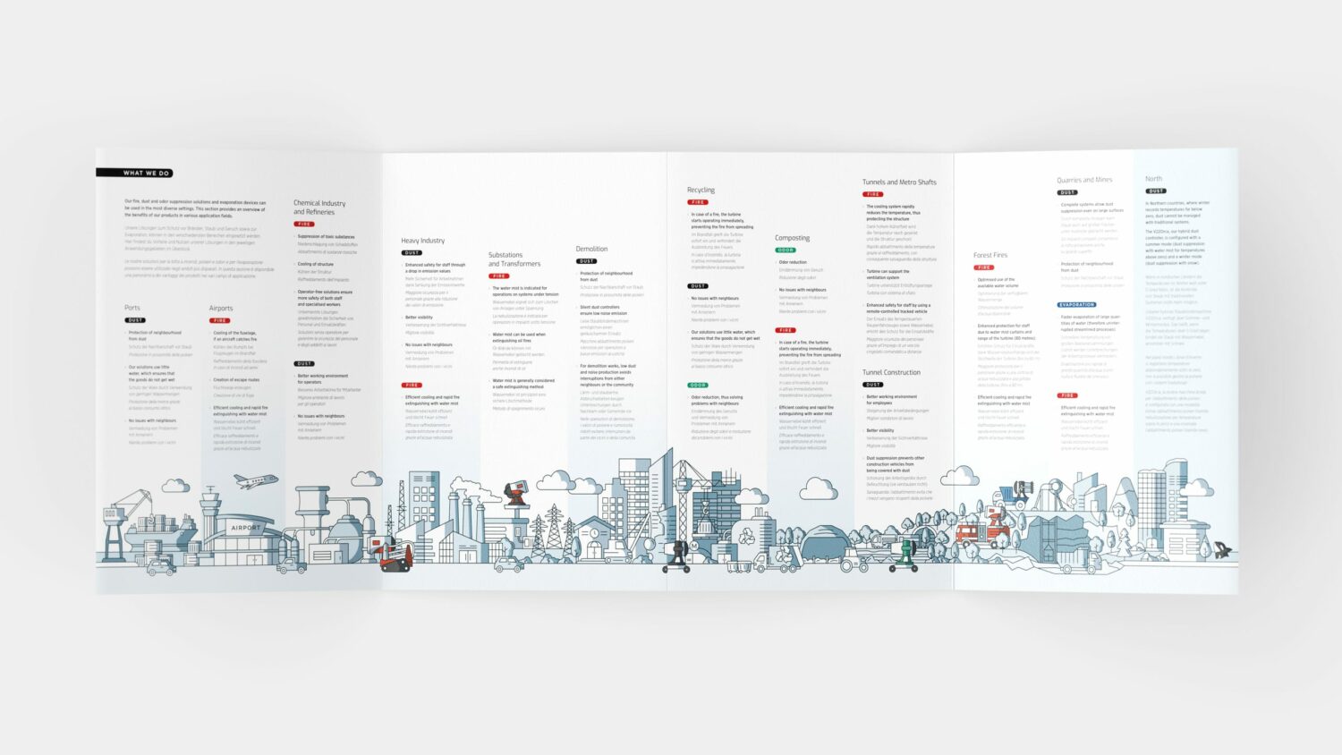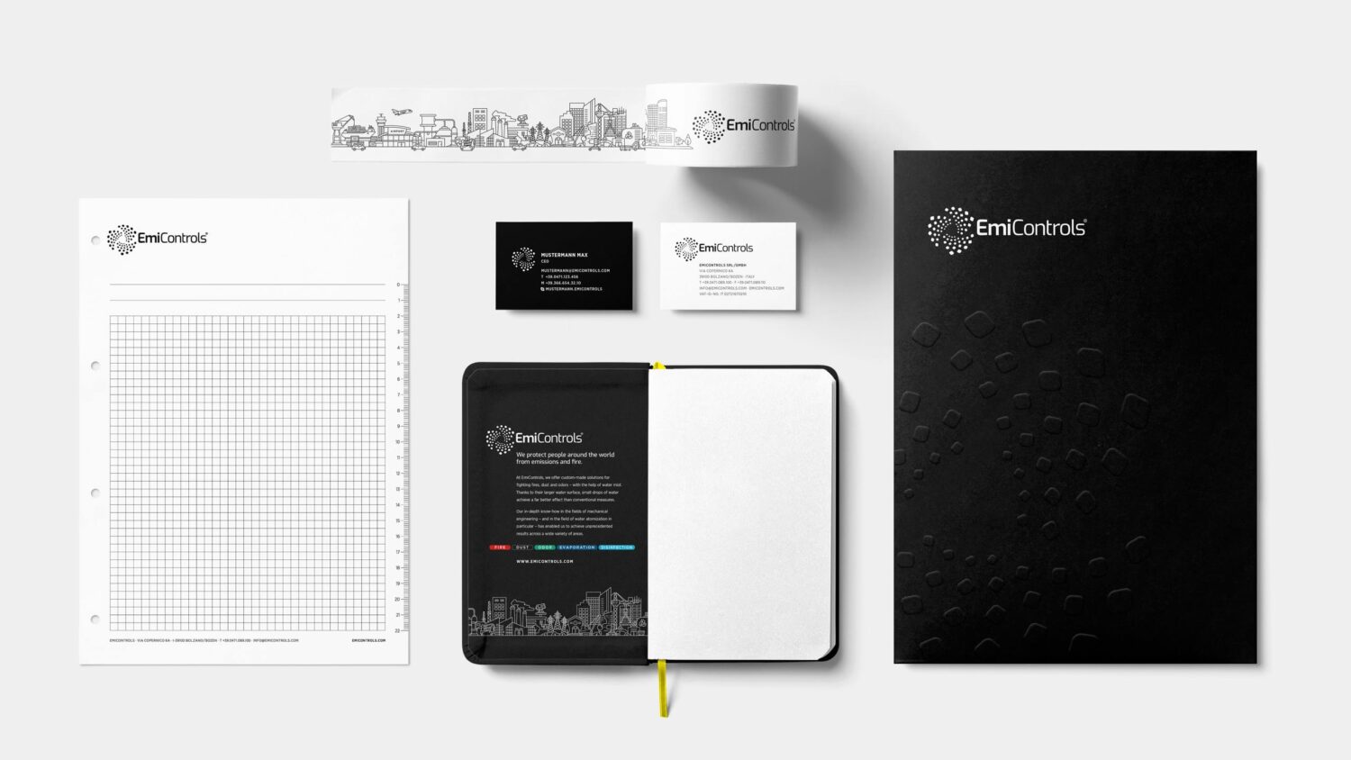 EmiControls provides innovative solutions for fire, dust, and odor control and has been operating for over 30 years in more than 40 countries, establishing itself as a leading company in the industry. Thanks to their unique product mix, the company from South Tyrol is now operating globally and needed a new, bold and flexible corporate identity to compete in the international market.