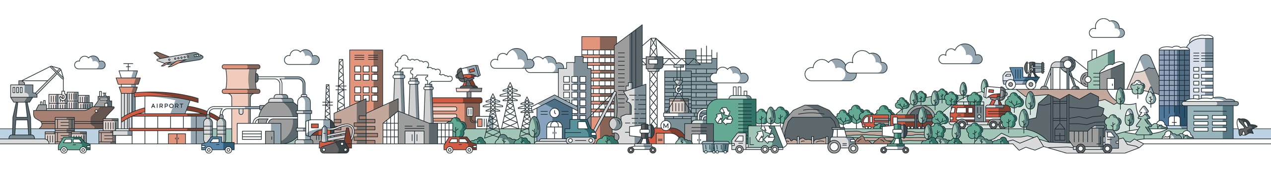 A modular illustration showcases all the areas the company operates in and can be adopted for print, web and animation.