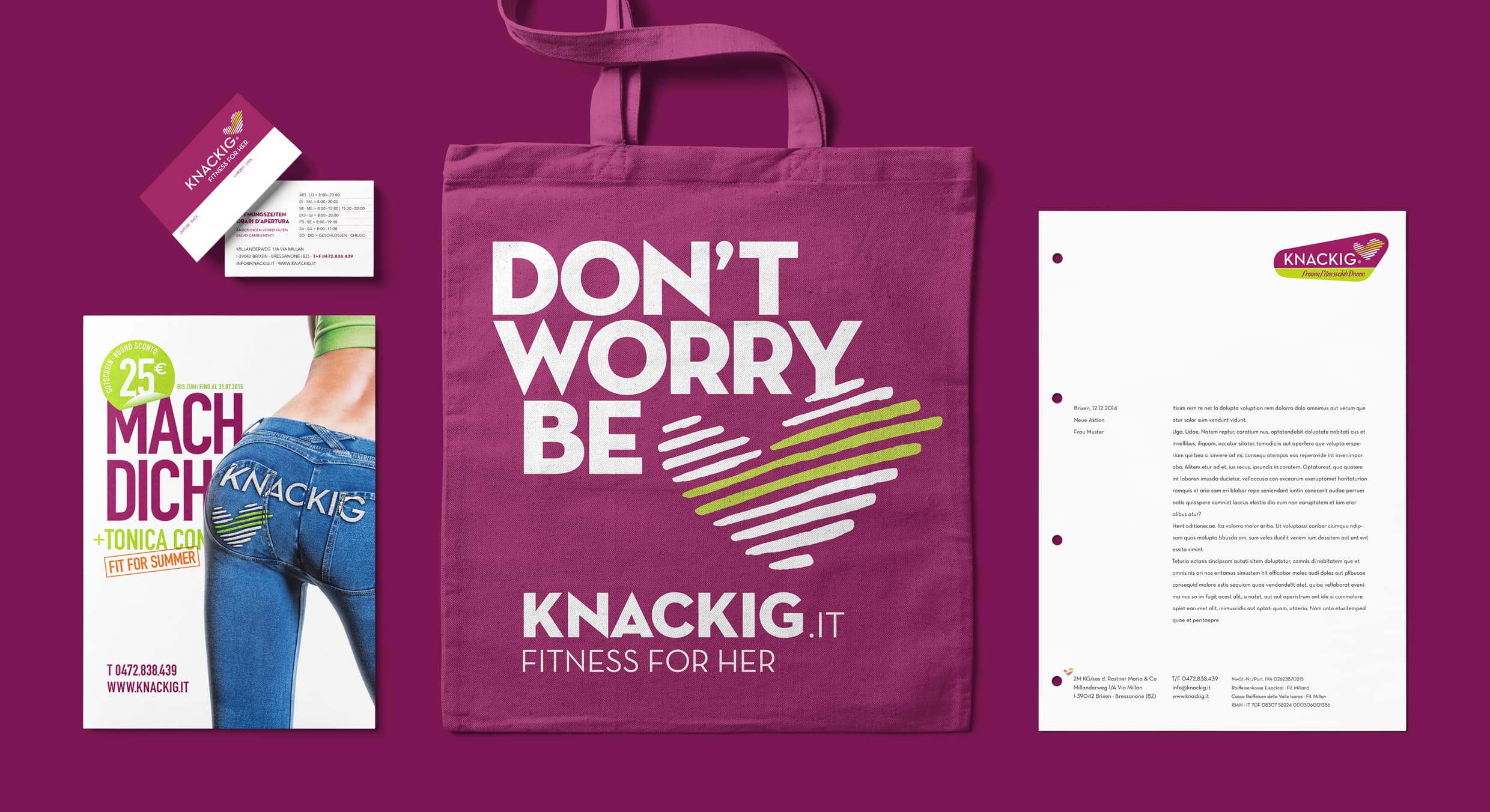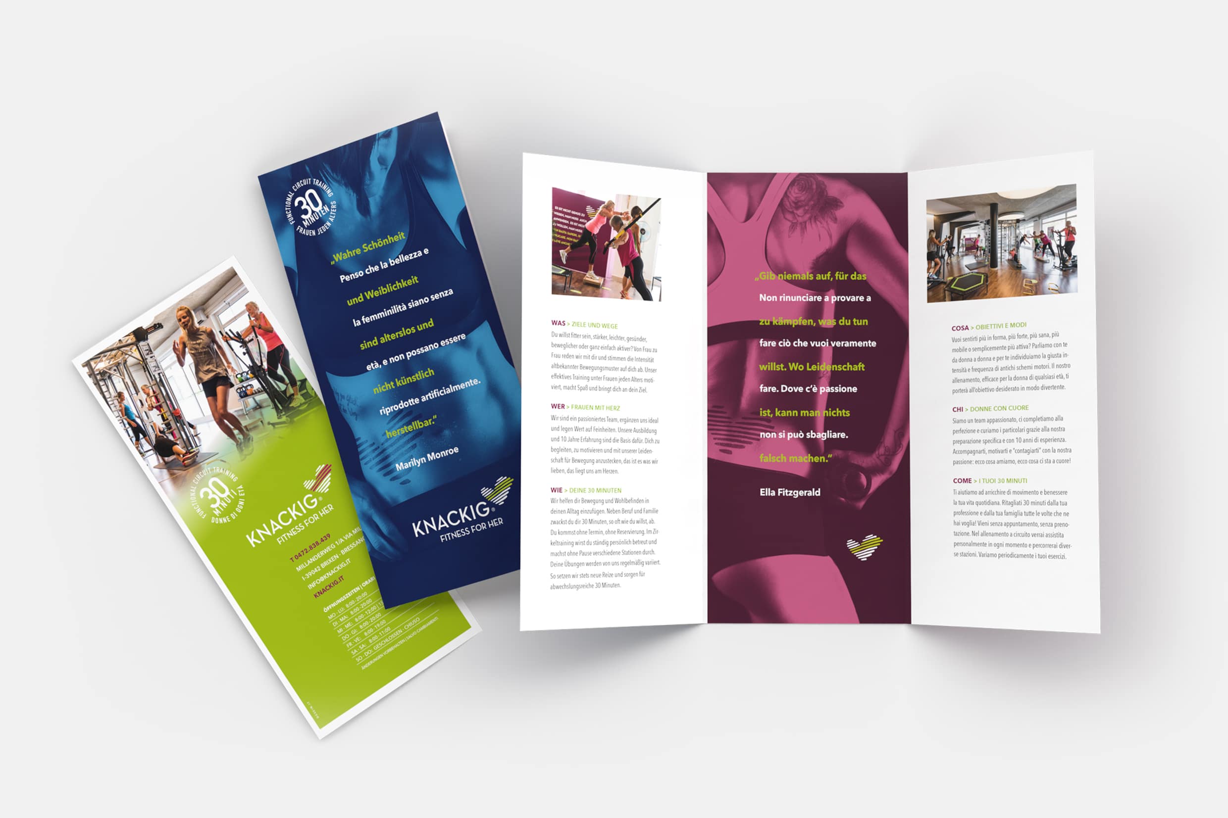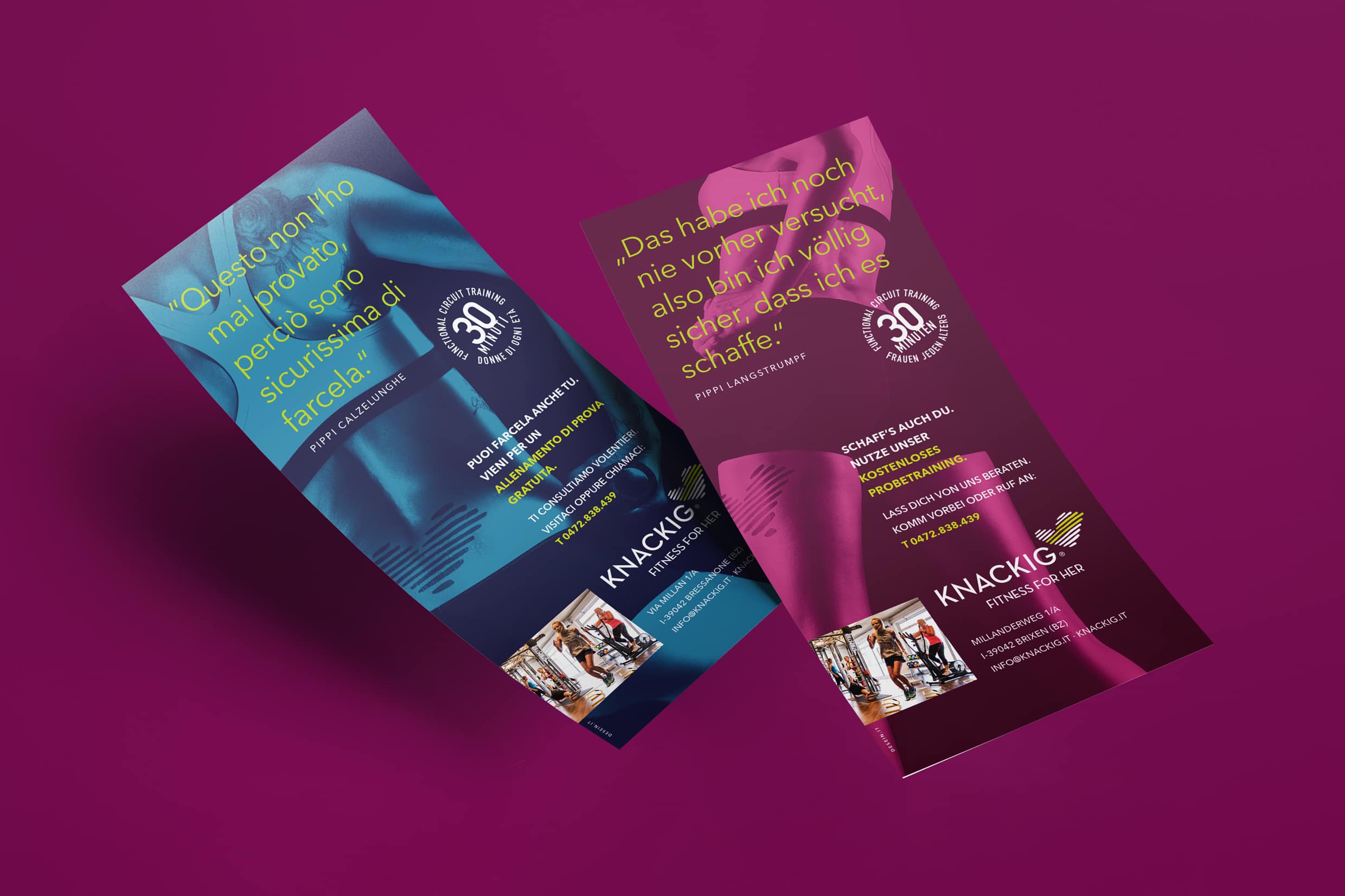 Knackig is a small Fitness Center with a big service and a big heart for women of all ages. Knackig became a well-known brand in South Tyrol in just a few years.