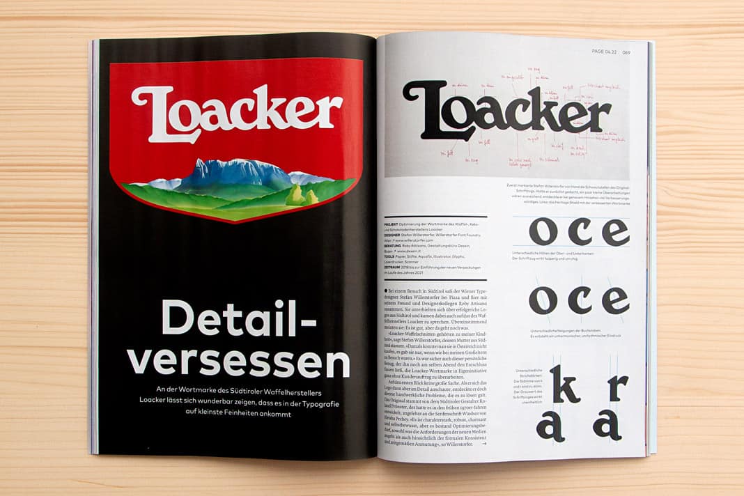 Our project in the Page, issue (04/22), Germany’s most popular design magazine. The four-page article Detailversessen (detail-obsessed) in the Page showcases our redesign of the famous Loacker brand in great detail (image credit: willerstorfer.com).