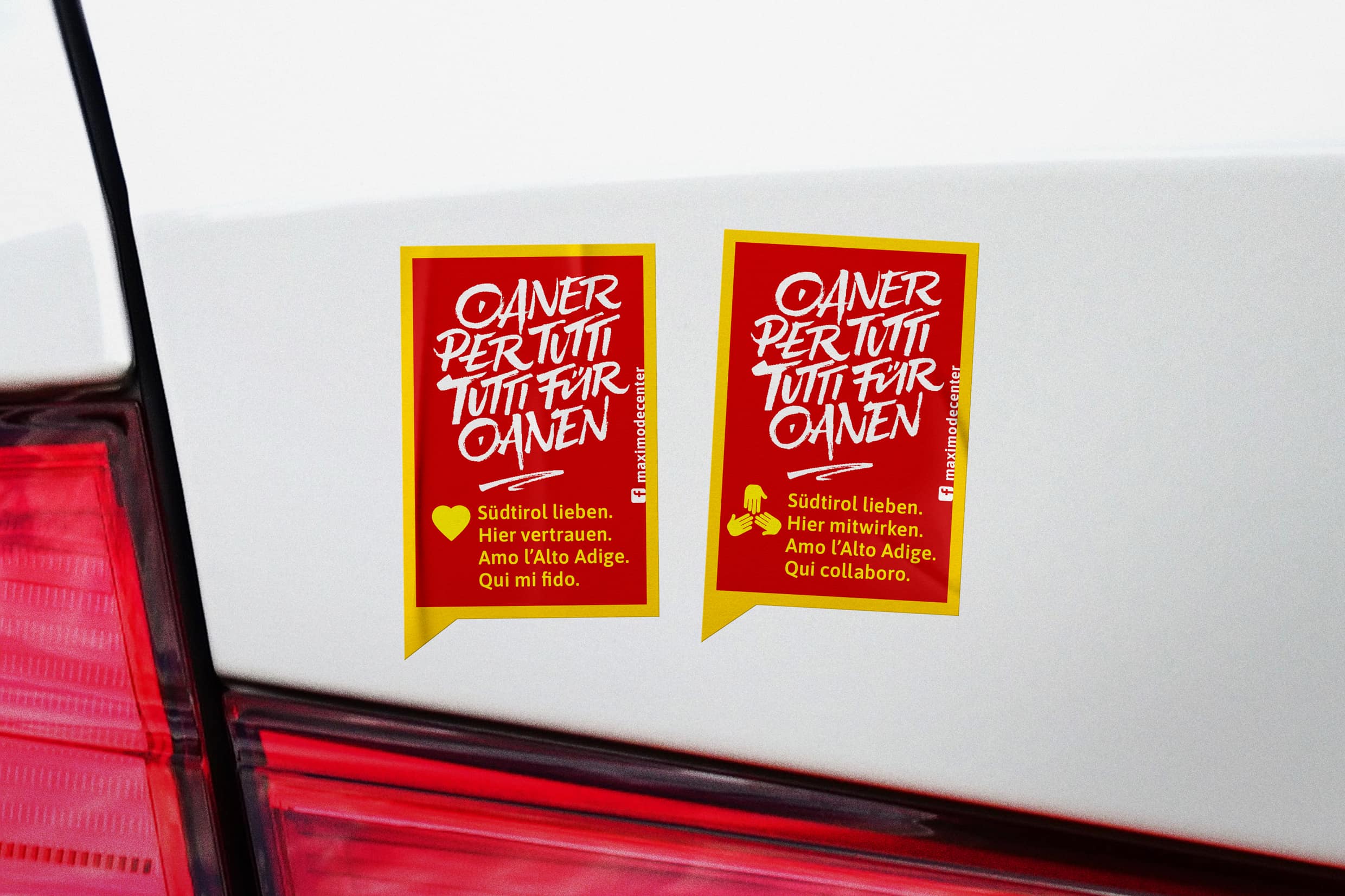 Awareness campaign to fight the Covid Crisis 2020 "Oaner per tutti, tutti für Oanen" (One for All, All for One). A positive bilingual guiding theme for motivation and solidarity.