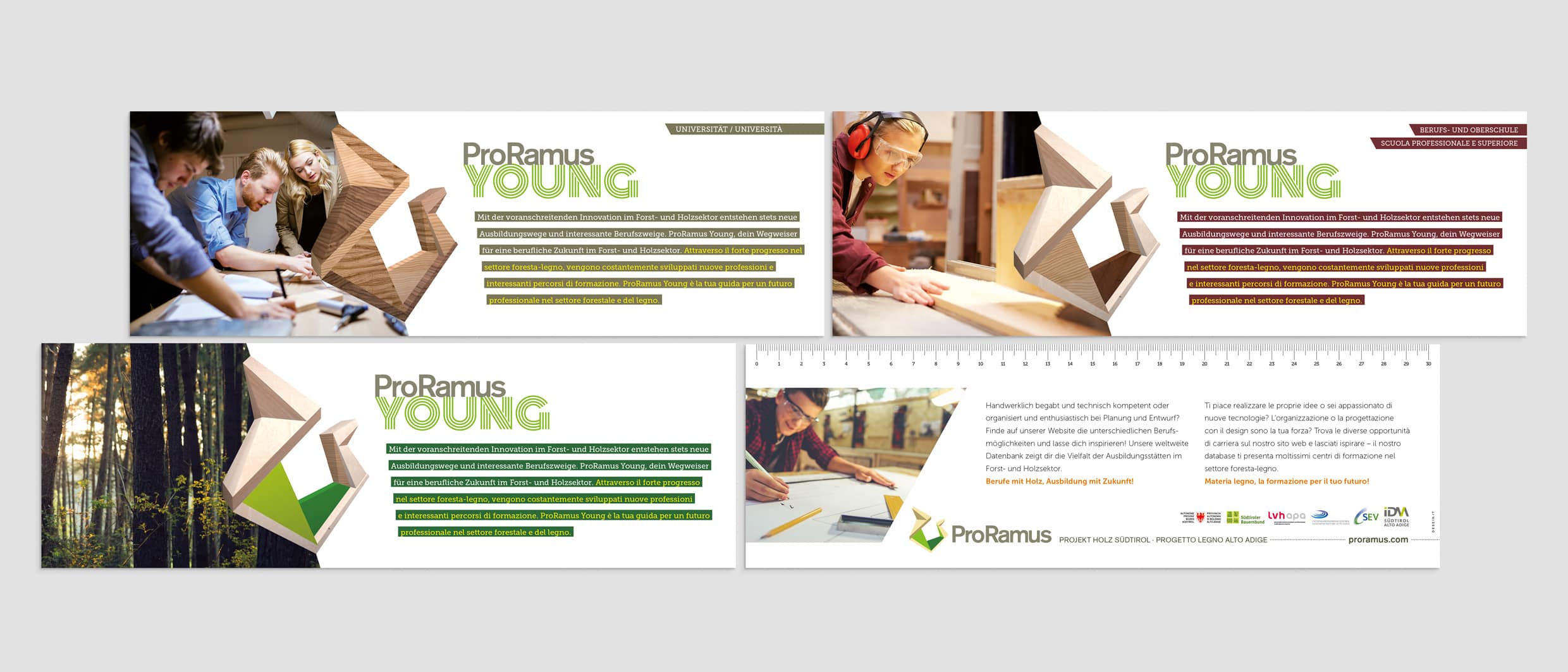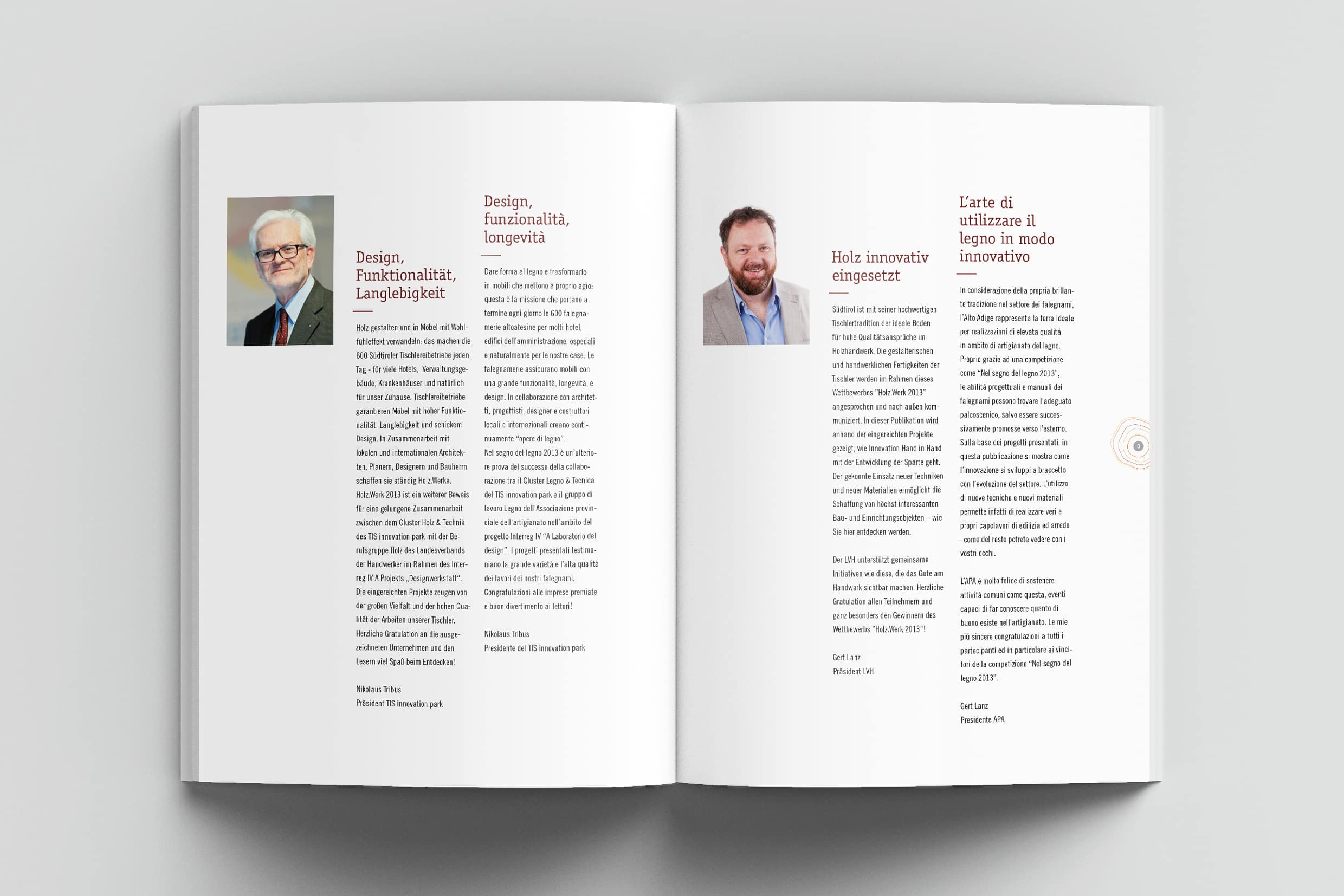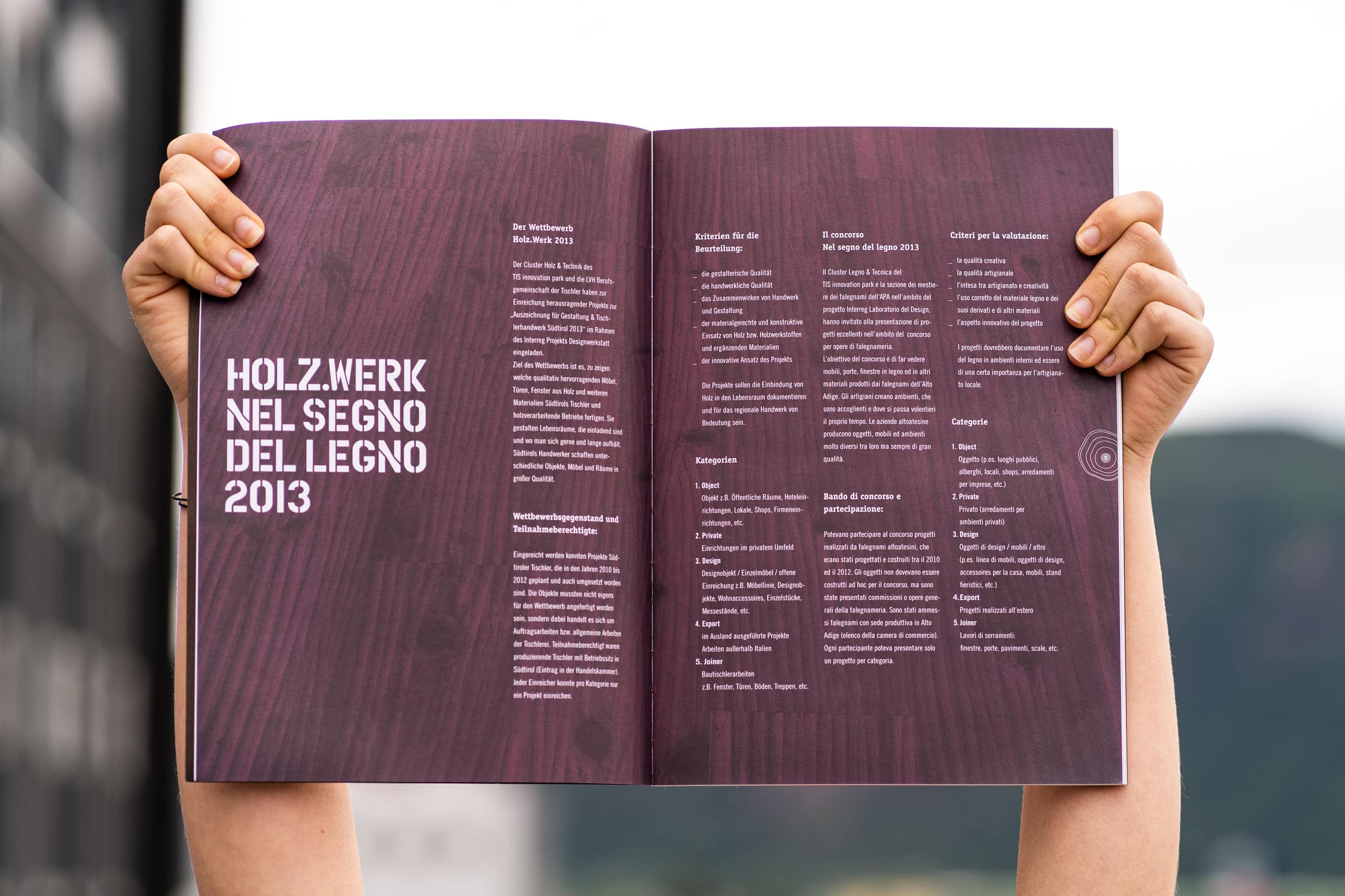 Passion for our forests, recognition of the local added value, and dedication to the wooden resource: The forest and wood initiative of South Tyrol. Communicating the wood know-how of South Tyrol and strengthening the awareness around the material wood through information, communication, events, and PR measures.