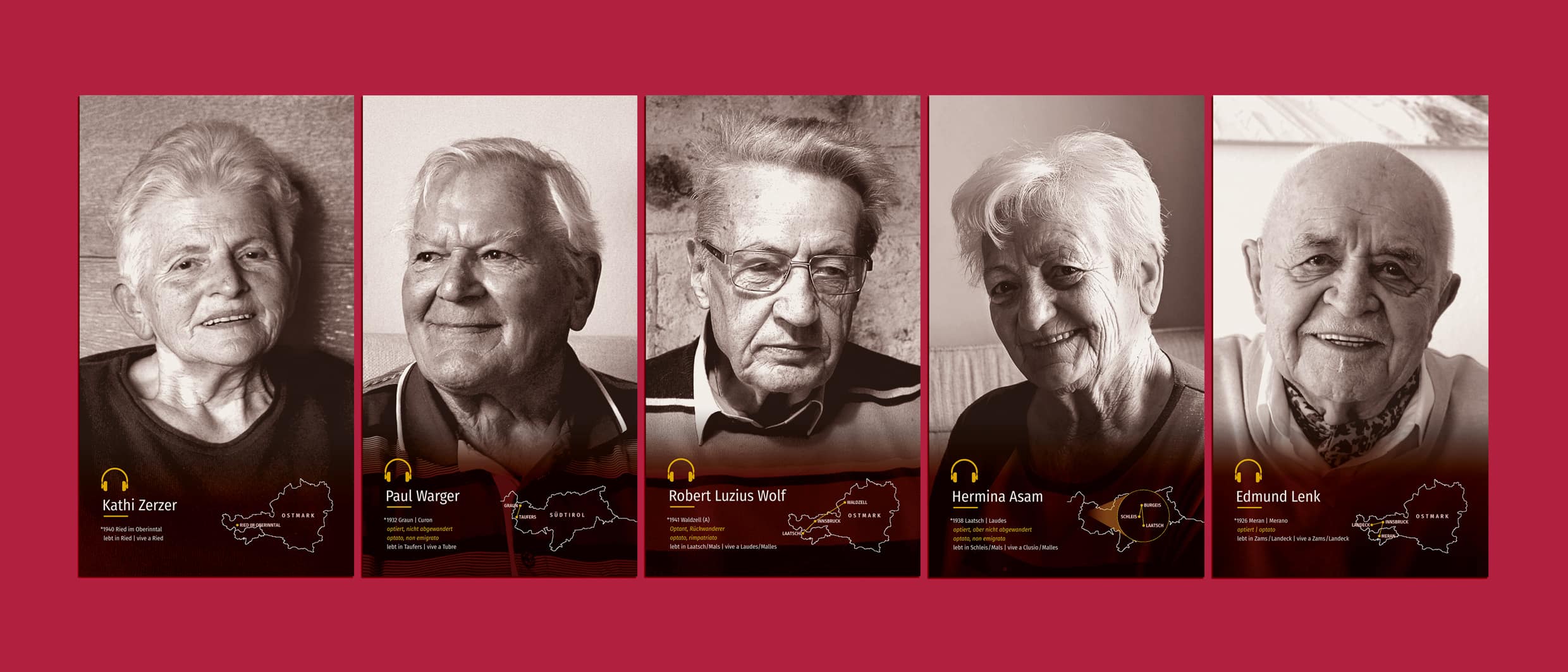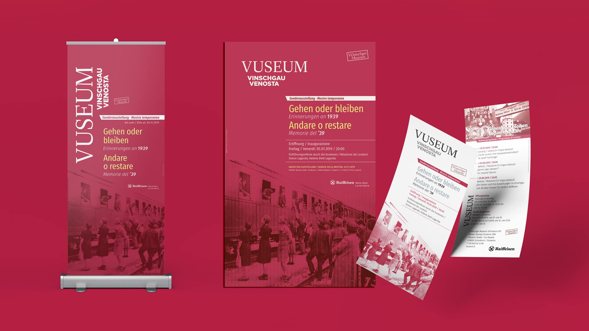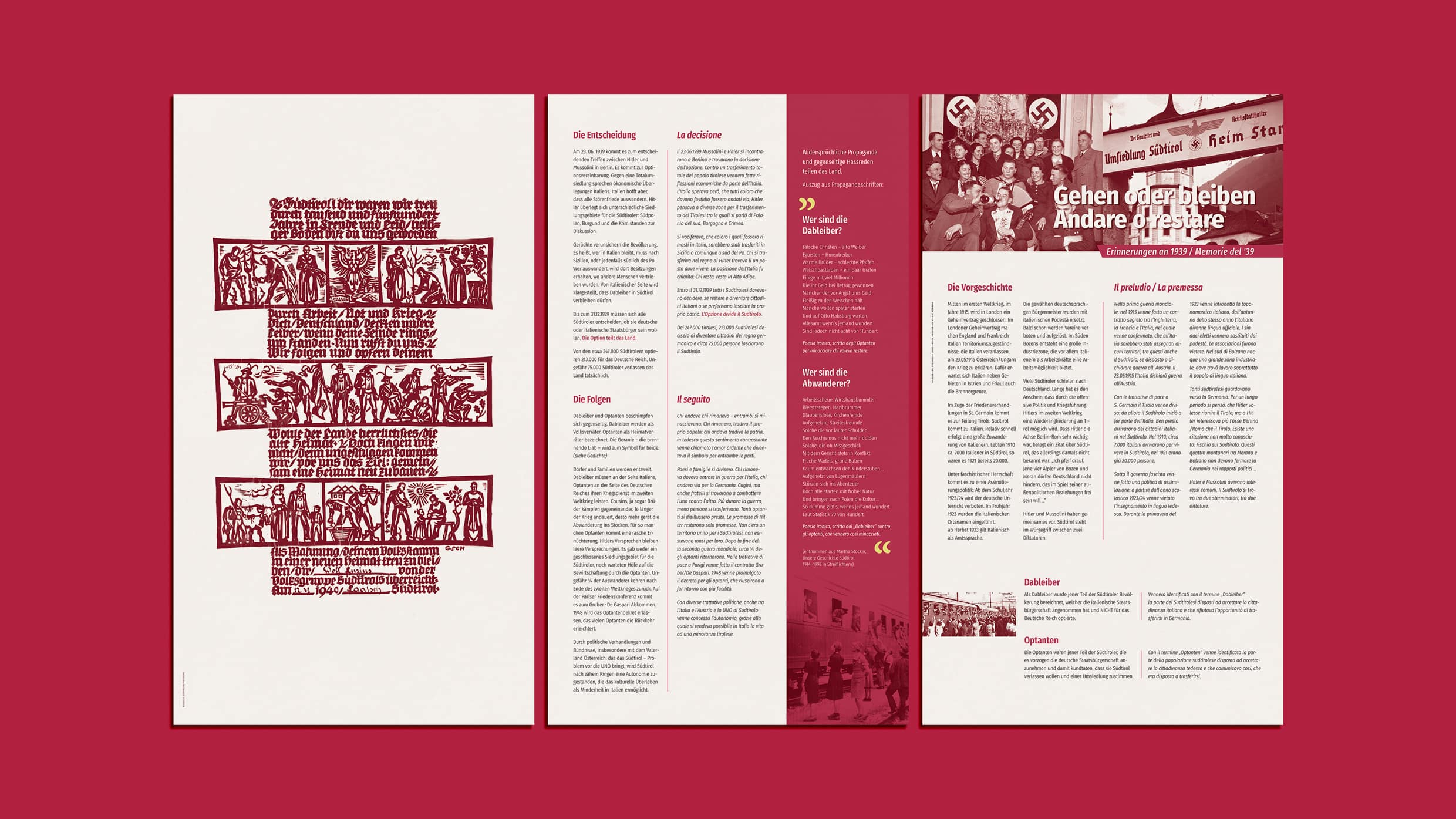 For the special exhibition about the South Tyrolean Option from 1939 red wos chosen as the primary color.